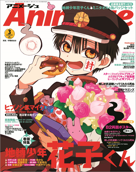 アニメージュ3月号 2月10日 土 発売 表紙 巻頭特集は アイドリッシュセブン 表紙はバレンタイン仕様のidolish7の年下組がとてもキュート インタビューはシリーズ構成の関根アユミ 対談は増田俊樹 一織役 江口拓也 ナギ役 真崎エリカ 結城アイラなど